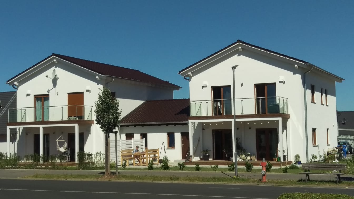 Dieses Doppelhaus entstand als eines der ersten Projekte in der Umgebung, das vollständig aus natürlichen Materialien realisiert wurde. Schon damals lag der Fokus darauf, ein gesundes und nachhaltiges Wohnumfeld zu schaffen, das sich harmonisch in die ländliche Umgebung einfügt.